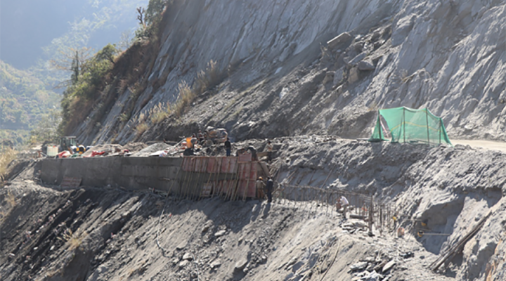बेनी–जोमसोम सडकको सिरुबारीमा ‘बेञ्चिङ’ विधिबाट पहिरो नियन्त्रण प्रयास