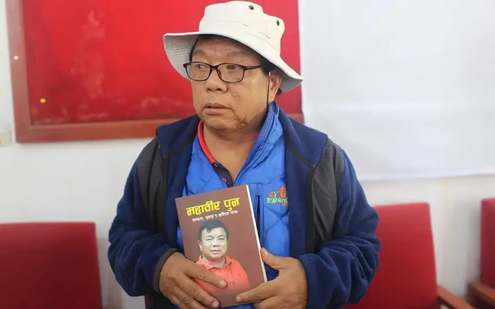 पोखरामा आत्मकथा बेच्दै नवनिर्वाचित सांसद महावीर पुन